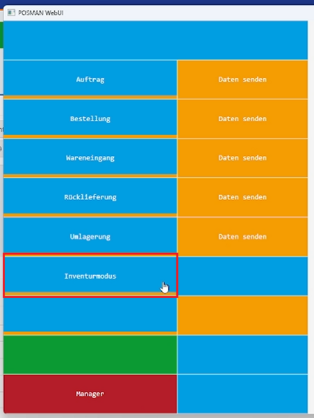 Anschließend stehen drei Optionen zur Verfügung: Erfassung starten, Daten senden oder Inventurmodus verlassen.
